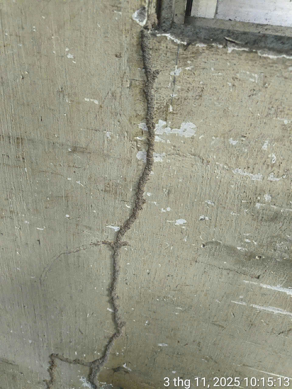Trên tường, chân cột hoặc cửa xuất hiện đường đất nhỏ màu nâu.